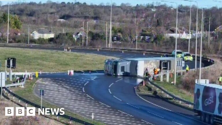 A5 Dunstable Northern Bypass closed after HGV overturns
