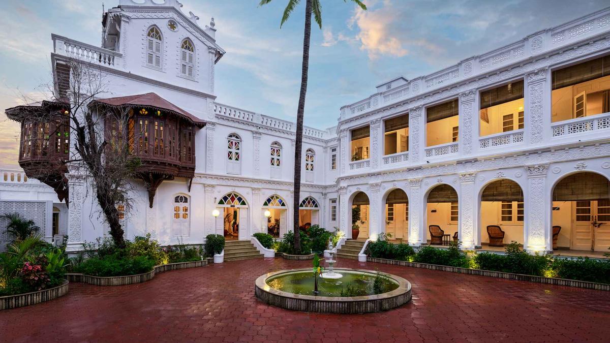 Today, the revamped home with architectural influences of colonial Gujarat has eight rooms; two deluxe twin rooms and six heritage suites. Six of these rooms are named after Kadri’s brothers, and the other two are dedicated to his elder brother’s children. No two rooms are the same, with private balconies, sit-outs, stained glass windows, and connecting doors adding to the bungalow’s vintage charm. The family’s touch remains with heirloom artefacts, paintings, perfume bottles, and portraits scattered not just in the rooms but across the lobby and dining areas. “The internal courtyard houses a swing that used to be my mother’s favourite spot in the house,” reminisces Kadri, now 91, who helms Mumbai-based IMK Architects. The said courtyard is where Dalan, the all-day restaurant, sits.