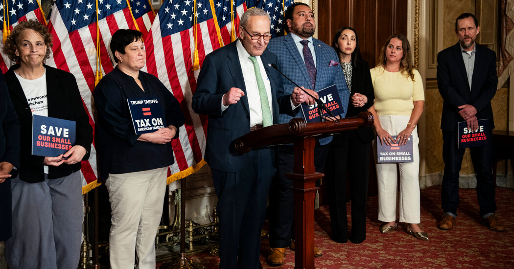 “President Trump’s trade war is economic arson on Main Street, and these folks are getting scorched,” Senator Chuck Schumer, Democrat of New York and the minority leader, said at a news conference this week with several small business owners.