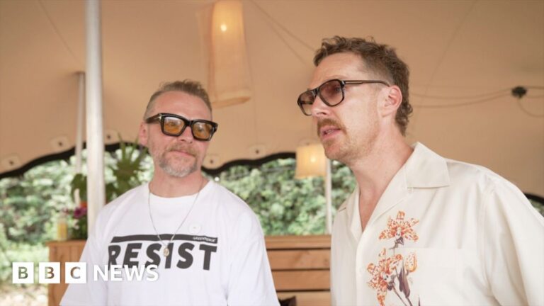 Benedict Cumberbatch has been talking about his first time at Glastonbury Festival along with fellow actor Simon Pegg.