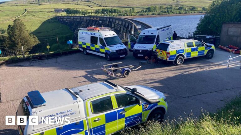 Emergency crews were called to the dam at Baitings Reservoir near Ripponden at about 13:15 BST on Wednesday following reports of a person in the water.