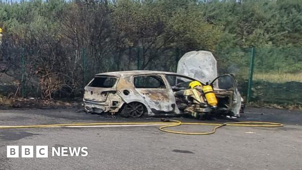 A dual carriageway was forced to close after a car fire spread to adjoining heathland.