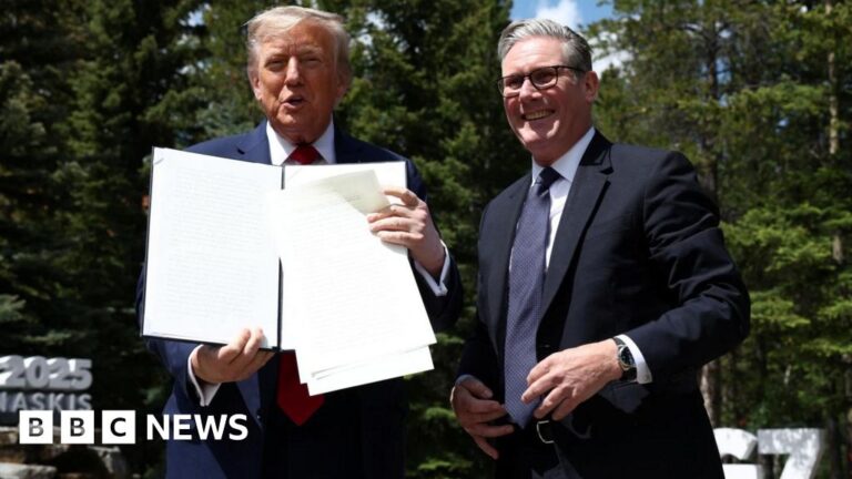 In the Canadian sunshine here in the Rockies at the G7 summit, President Trump emerged from a meeting with Sir Keir Starmer brandishing a folder.