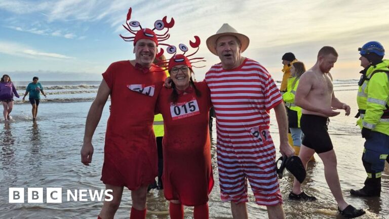 Swimmers braved the chilly waters in Mablethorpe and Cleethorpes in Lincolnshire.