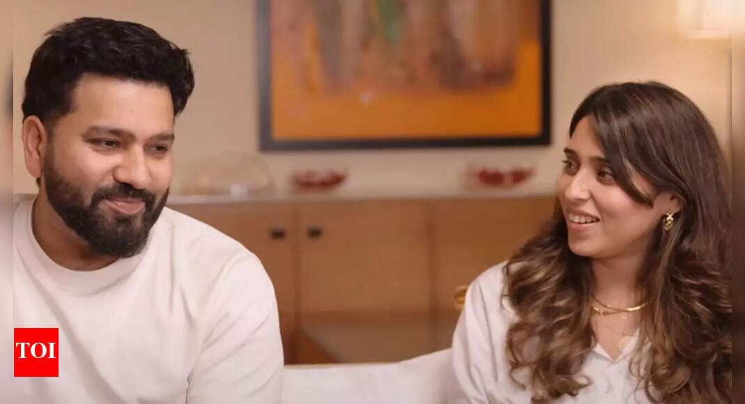 Rohit Sharma and Ritika Sajdeh speaking on Harbhajan Singh’s podcast Who’s The Boss? (Image via YouTube/@WhosTheBossShow)