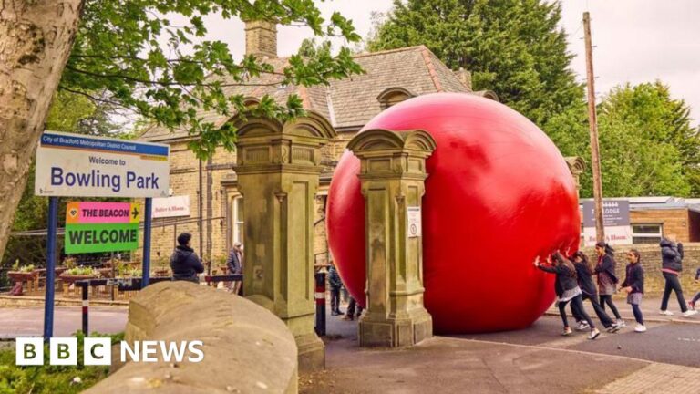 A giant red ball hailed as the “world’s longest-running street art work” has rolled into Bradford as part of its UK City of Culture celebrations.