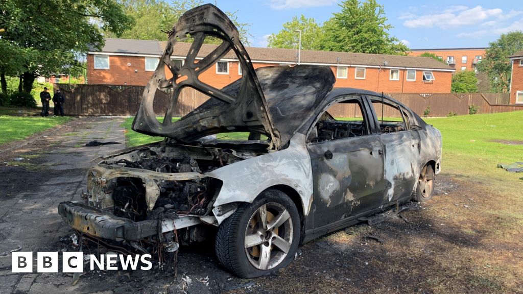 The force said cars were stolen and set on fire, motorbikes were being ridden erratically and bricks were thrown at officers, while wheelie bins and cars were used to block off the road.