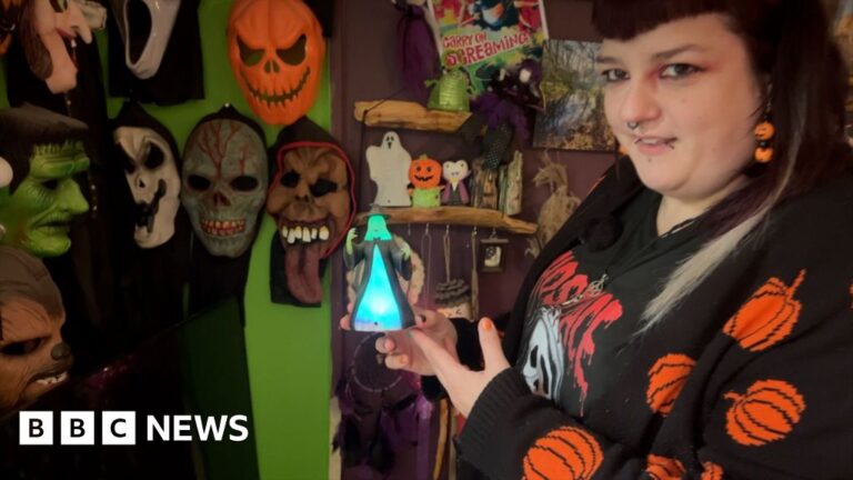 The 42-year-old from Gloucester has spent decades decorating her house with witches, skulls, pumpkins and assorted other spooky ornaments.