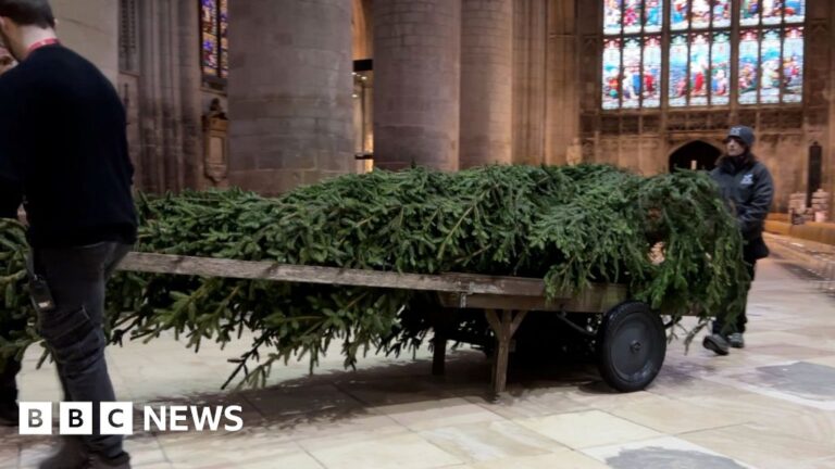 Staff at Gloucester Cathedral have been busy sorting the logistics of getting 16ft Christmas trees into the building and working out how to decorate them.