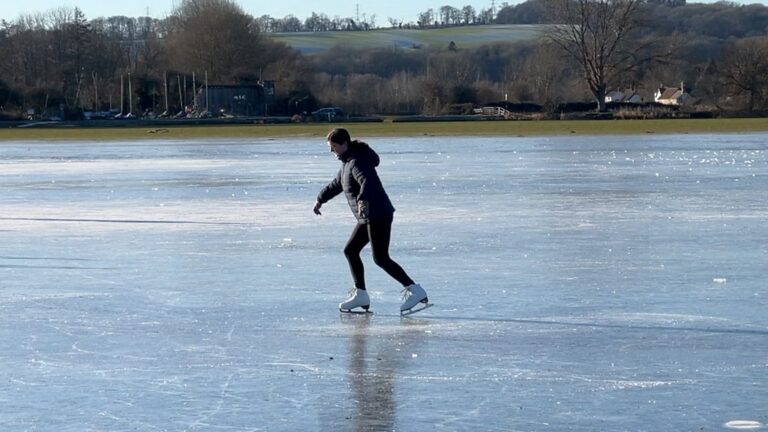 Ice skating on Oxford’s frozen-over Port Meadow