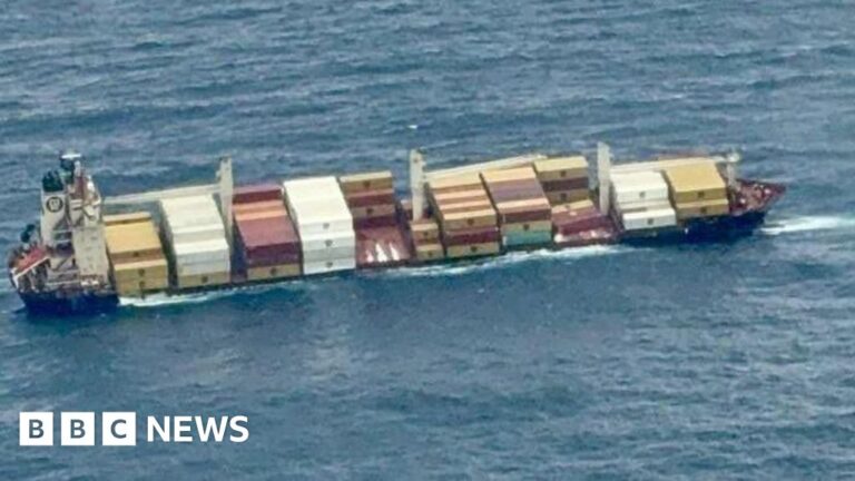 All 24 crew members on board the ship have been rescued but some of the ship’s 640 containers have reportedly been drifting towards the shore, prompting evacuations in the area.