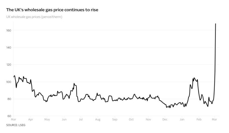The longer it continues, the greater will be the impact on household bills in the UK, which have been fixed until June (and benefit from a £150 discount thanks to a measure in the last budget), but are due to reflect wholesale prices as of July.