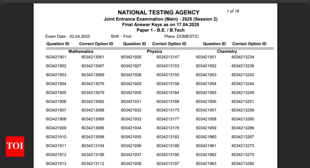JEE Mains answer key 2025: The National Testing Agency (NTA) has officially released the final answer key for the JEE Main 2025 Session 2 exam. Candidates who appeared for the examination, conducted from April 2 to April 9, can now access and download the final answer key from the official NTA website, jeemain.nta.nic.in. This release comes after the provisional answer key was made available on April 11, with a window to raise objections open until April 13. The results for the JEE Mains session 2 exam are expected to be released soon. Over 10 lakh candidates appeared in the session 2 exam.
