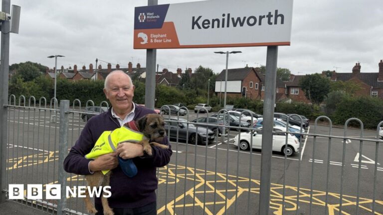 Bertie, a six-year-old border terrier, visits Kenilworth station with his owner John Boothroyd, who is part of a volunteer group that helps make improvements to the station.