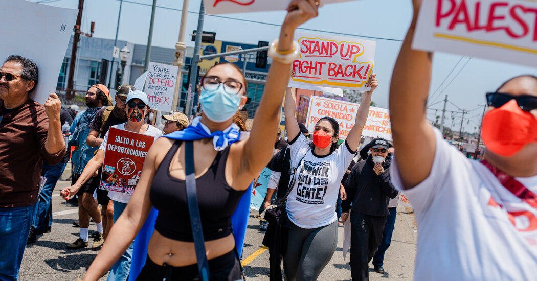 “Look at all the foreign flags,” Stephen Miller, the deputy White House chief of staff and the architect of Mr. Trump’s domestic agenda, said Sunday on X. “Los Angeles is occupied territory.”