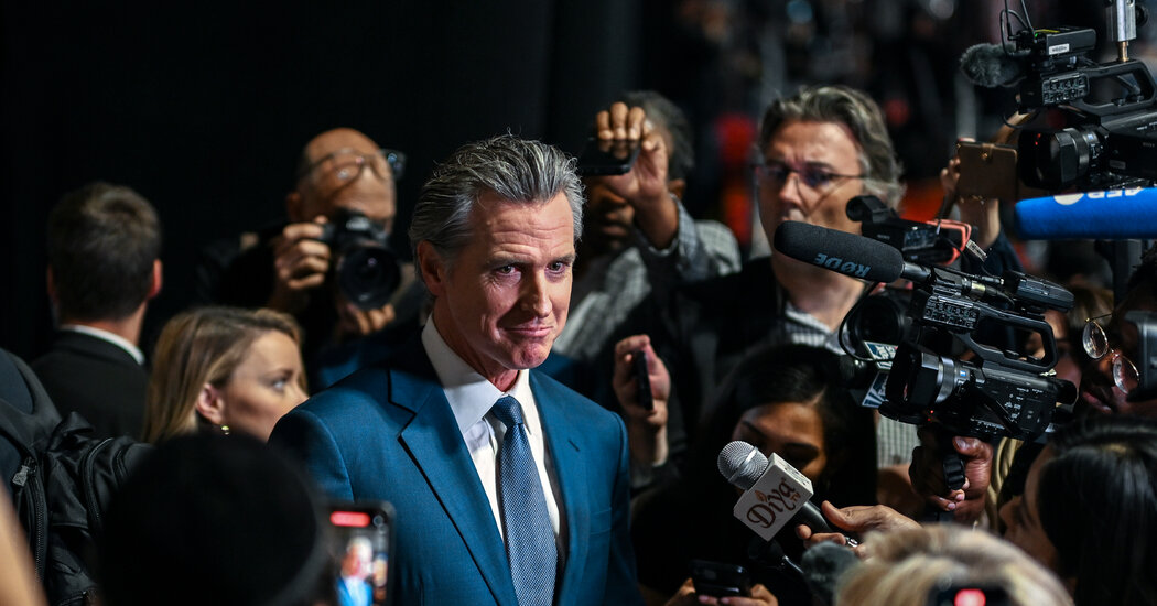 Gov. Gavin Newsom of California delivered a speech on Tuesday, titled “Democracy at a Crossroads.” The following is a transcript of his remarks as broadcast online and on television channels:
