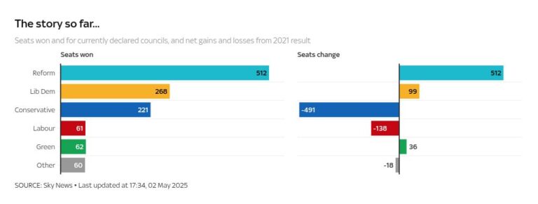 Politics latest: Sky News analysis shows Reform surge in estimated national vote