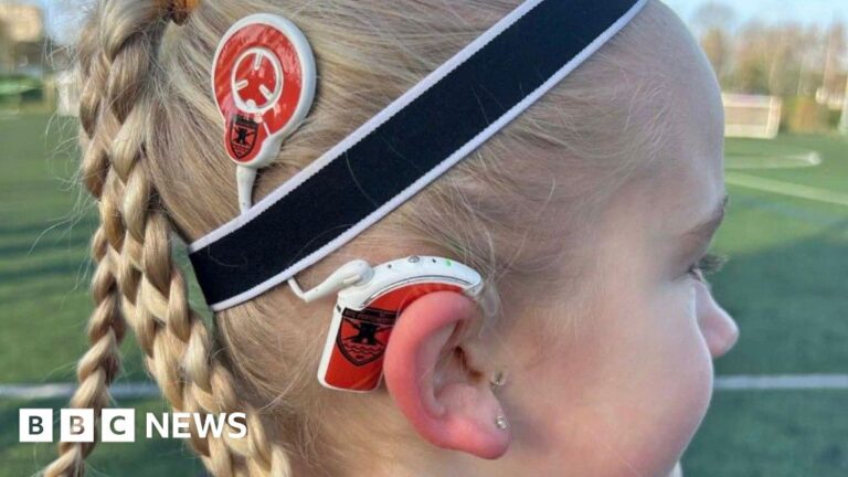 Milly’s cochlear implants are now branded in AFC Portchester’s primary colours, orange and black.