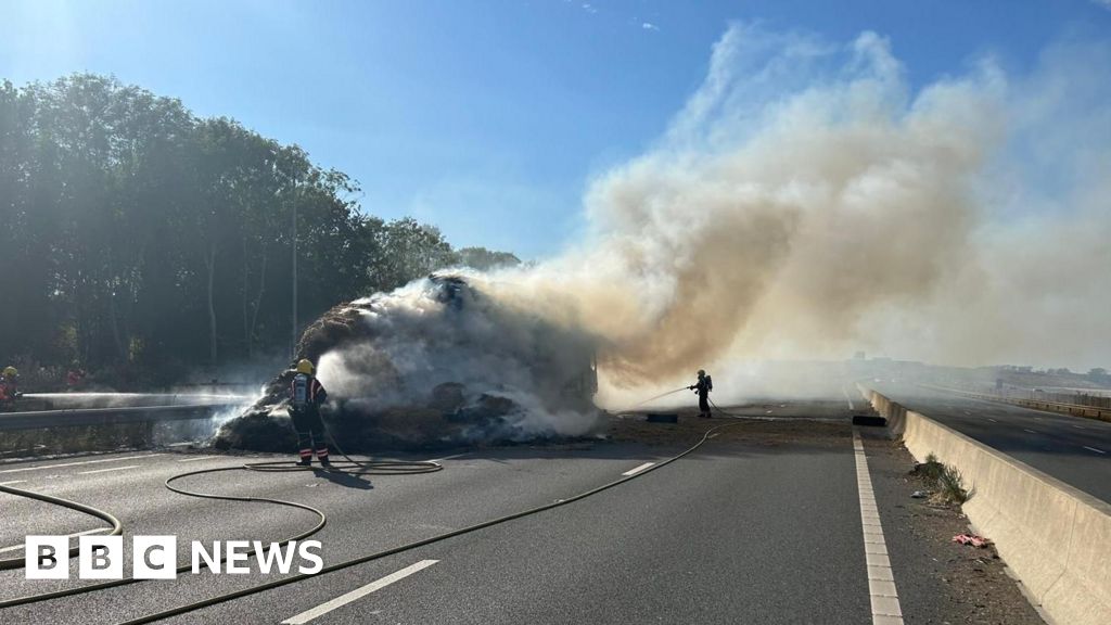 BBC reporter Matthew Webb, who saw the incident, said the lorry appeared to be transporting hay.