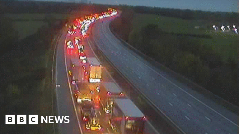 Home » M1 closed in Leicestershire after lorry crash causes fire
