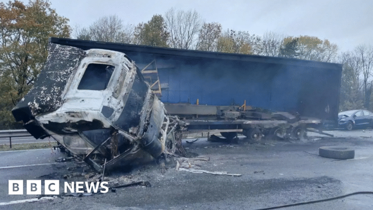 Home » M1 fully reopened after lorry crash caused fire