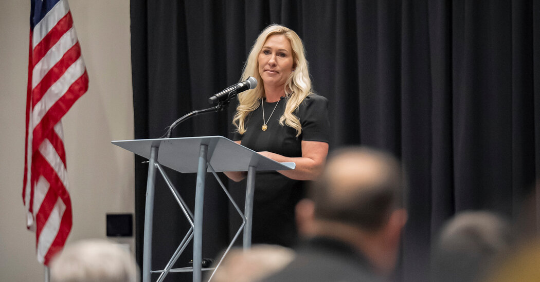 In her Friday night post, Ms. Greene accused the “elites” in her party of “trying to carefully select someone who can dress up in MAGA just enough to trick the grass roots into thinking they’re one of us — someone who won’t dare challenge the Republican establishment or disrupt the status quo that has failed the people time and time again.”