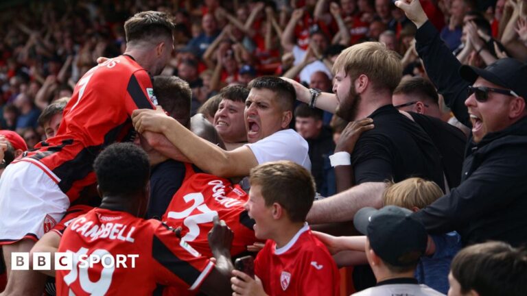 As they piled forward, Morecambe took advantage of the space left behind, with Ogwuru arrowing a ferocious finish into the far corner before celebrating with the delirious supporters behind the goals.