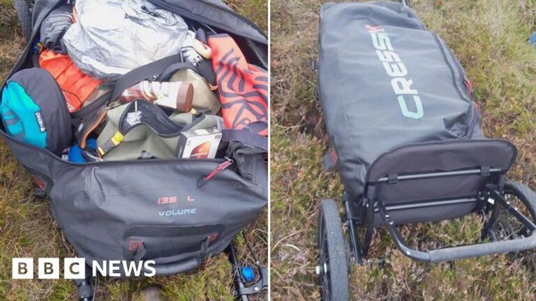 The bag, filled with outdoor walking equipment, was discovered by a walker on the Pennine Way near the Cheviot Hills on Friday, Northumberland National Park Mountain Rescue Team (NNPMRT) said.