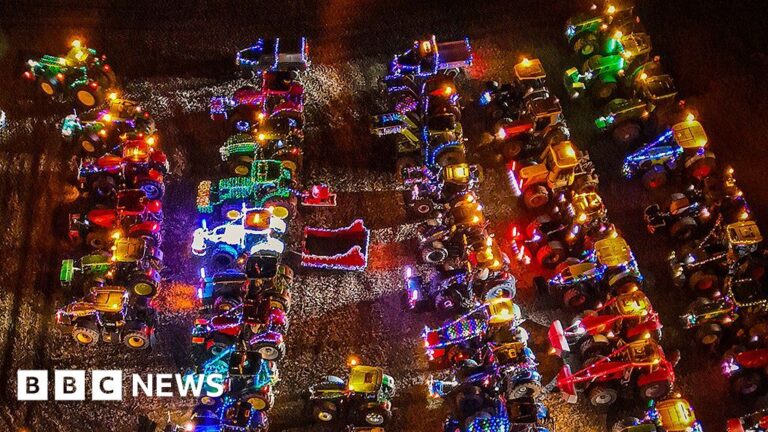 Festive tractors sparkled along the roads of a market town in north Norfolk to raise money for a local hospital’s neonatal ward.