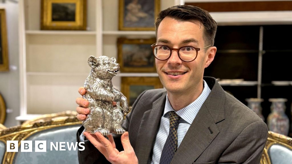 The silverware, in the form of a seated bear with an outstretched paw, was made by Robert Hennell of Hennell, a “renowned silversmith” established in 1736 in London.