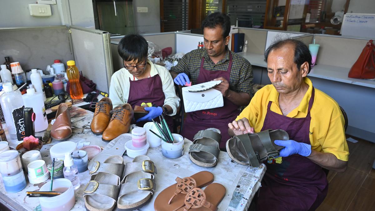 Shoes and bags being reworked at Mr. Pronto’s Leather Care and Laundry in Kottupuram, Chennai