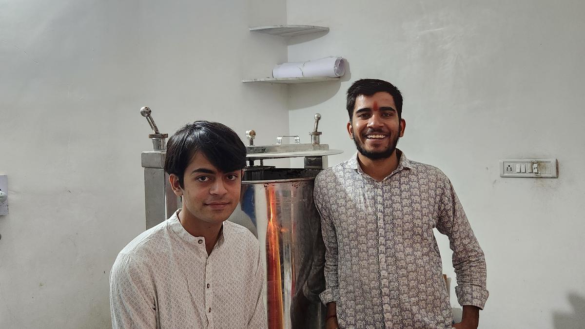 Digvijay with his cousin Mahaveer at Saraam chocolate making unit