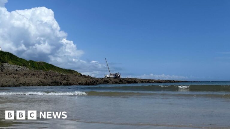 HM Coastguard said it was called to Chapel Point, between Portmellon and Gorran Haven, at about 20:15 BST on Friday after the boat had been discovered run aground.