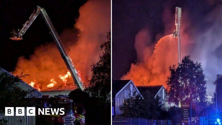 Fire crews from Norfolk and Suffolk were called to Britannia Alan Cook, on Pinbush Road in Gisleham, Lowestoft, at about midnight on Monday.