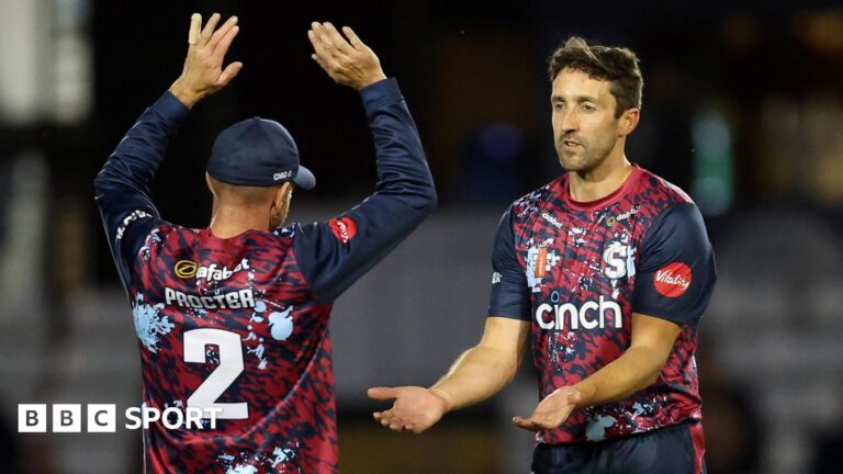 Crawley’s dismissal effectively ended any hopes Kent had of chasing down a target of 194, and although Santner’s actual hat-trick ball at the start of the 17th over did not result in a wicket, he finished with 3-28 as they came up short on 151-9.