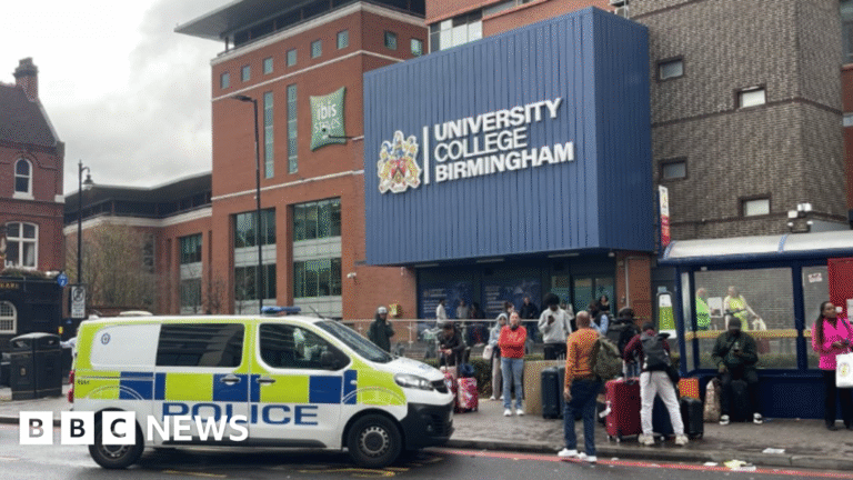 West Midlands Police were called to reports of a stabbing at University College Birmingham on Summer Row at around 15:30 BST on Wednesday, where a 17-year-old boy was found with stab injuries.