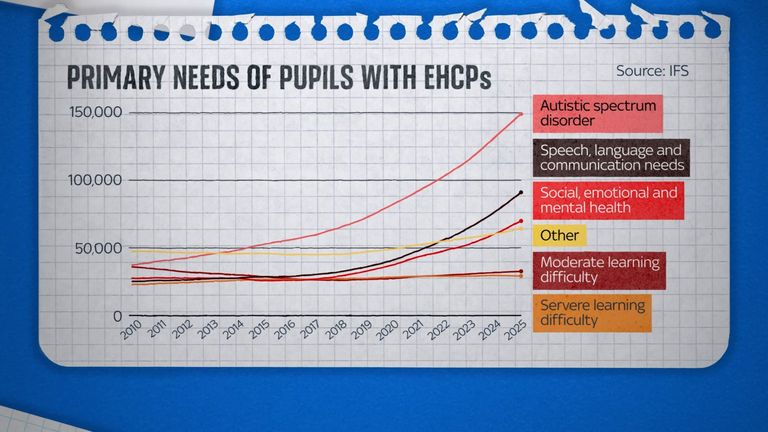 Meanwhile, unhappy families who initially fail to secure an EHCP are increasingly going to court to secure support. In 2023, there were 21,000 appeals, with 99% going in favour of parents. The biggest rise of all in ECHPs is an increase in diagnosis of pupils with autism.