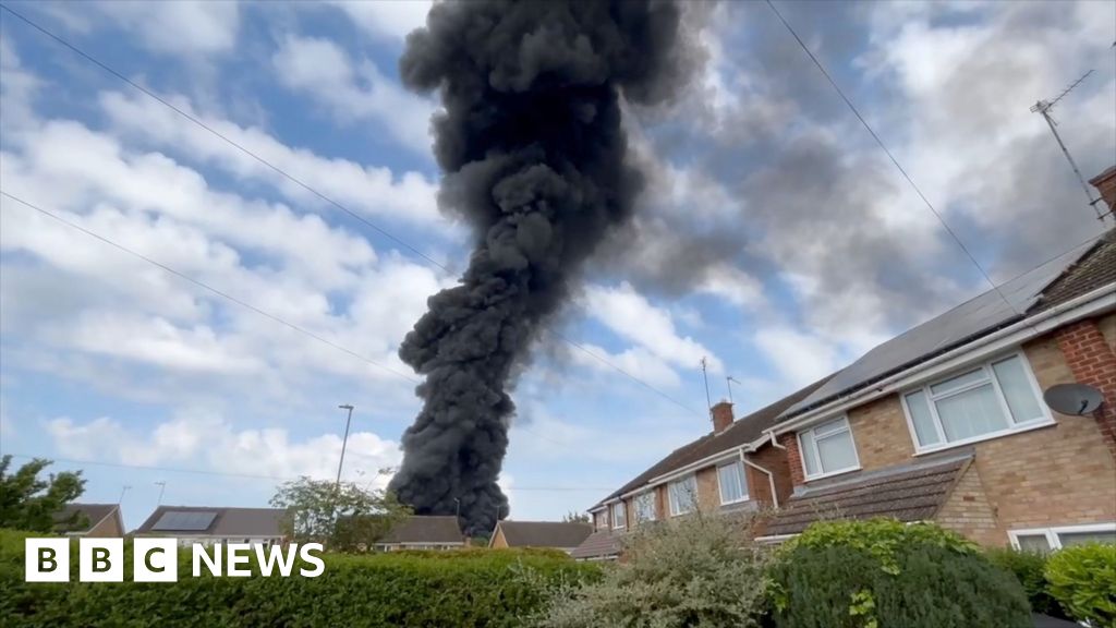Video showed a thick plume of black smoke billowing into the sky from a warehouse fire.