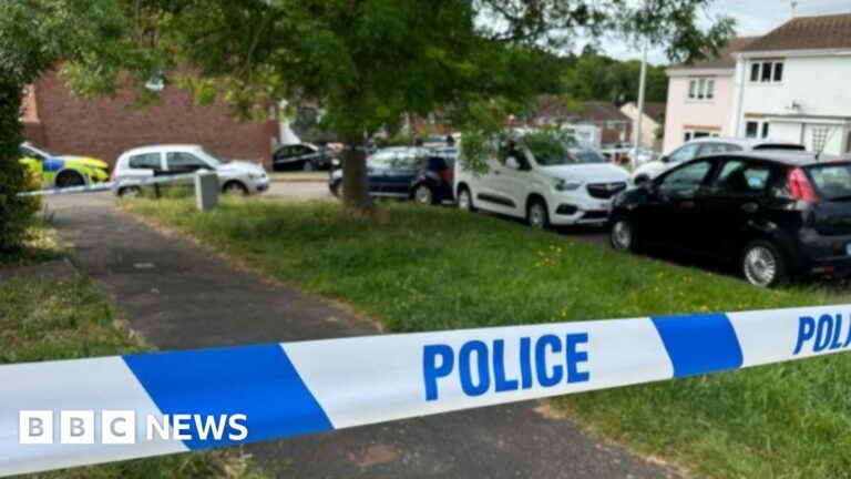 Officers were called at about 00:45 BST on Saturday after they received reports a man in his 20s had been assaulted and found in a garden of a property at Ashfield Close, Exmouth. He was pronounced dead at the scene.