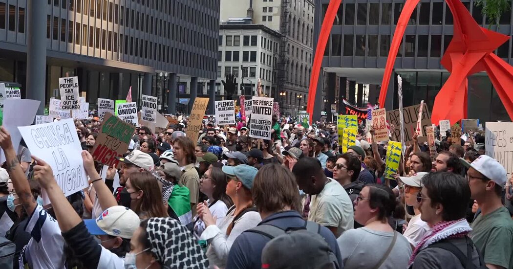 The demonstration in Chicago, a predominantly left-leaning city of 2.7 million, was far larger than the regular protests in the city in opposition to the Trump administration since January. For months, groups denouncing President Trump’s policies have held protests downtown, often joined by Democratic elected officials.