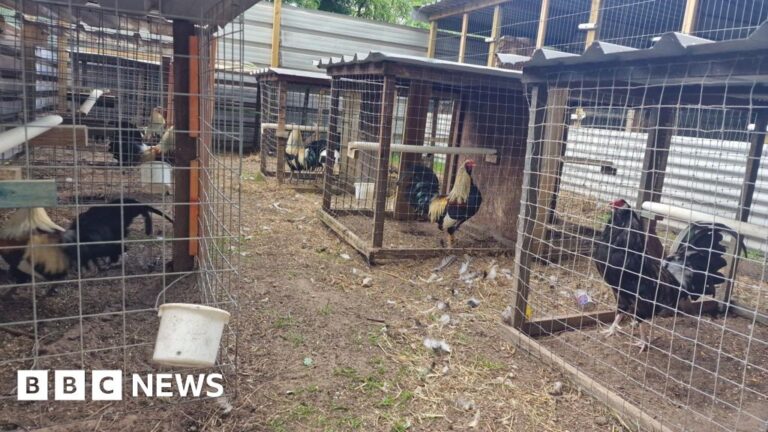 Officers found several “makeshift pits” used for the illegal sport, which involves the birds being goaded into fighting to the death in bouts which spectators then gamble on.