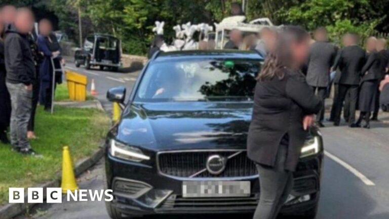 Two mourners were apparently struck by a car as they gathered for a funeral service outside a church, police have said.