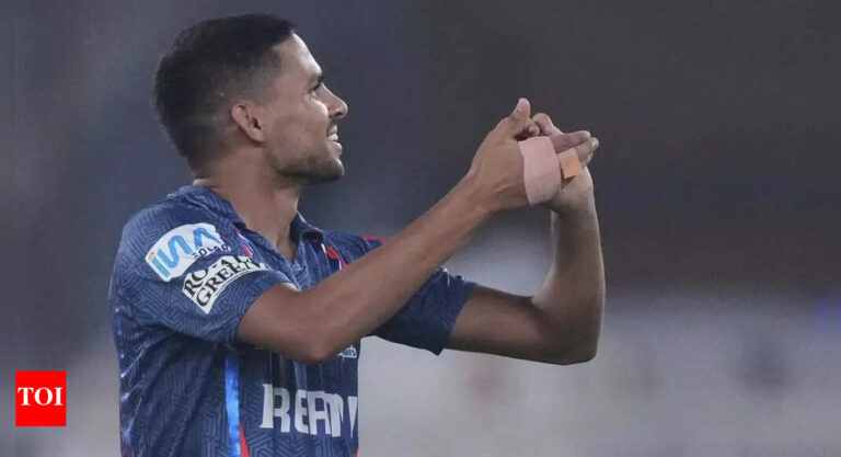 Lucknow Super Giants bowler Akash Singh brought out the notebook in the absence of the suspended Digvesh Rathi in the match against Gujarat Titans at the Narendra Modi Stadium in Ahmedabad on Thursday.WithRathi serving a one match ban, Akash celebrated the wicket of Jos Buttler with the spinner’s trademark style of signing a notebook in the air.In the 10th over of GT’s chase, Akash bowled a brilliant slower ball to catch Buttler off guard. Akash came round the wicket and the slower ball saw Buttler get too early into the push towards long-off. It created a big gap between bat and pad with the ball clattering into the middle and leg stumps.He then got the notebook signing celebrations out with a big smile and pointed to someone in the dug out, possibly to Rathi.Earlier Akash had to go off the field because his hand was bleeding while trying to stop the ball. When he returned, he got the big wicket to derail GT’s quest to chase down 236 runs.Go Beyond The Boundary with our YouTube channel. SUBSCRIBE NOW!Rathi was suspended after the match against Sunrisers Hyderabad when he exchanged words with Abhishek Sharma. Besides earning two demerit points, he was also fined 50 per cent of his match fees. It was his third offence of the IPL 2025 season.