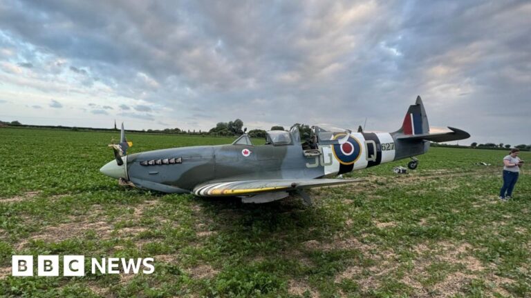 WW2 Spitfire makes emergency landing in Kent field